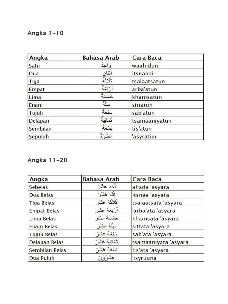 Disertai juga kaidah penggunaannya dalam kalimat. Berikut ini daftar angka 1 sampai 1 juta dalam bahasa arab. Karena penyebutan angka biasa diutarakan, terutama untuk menghitung jumlah barang dalam proses jual beli.